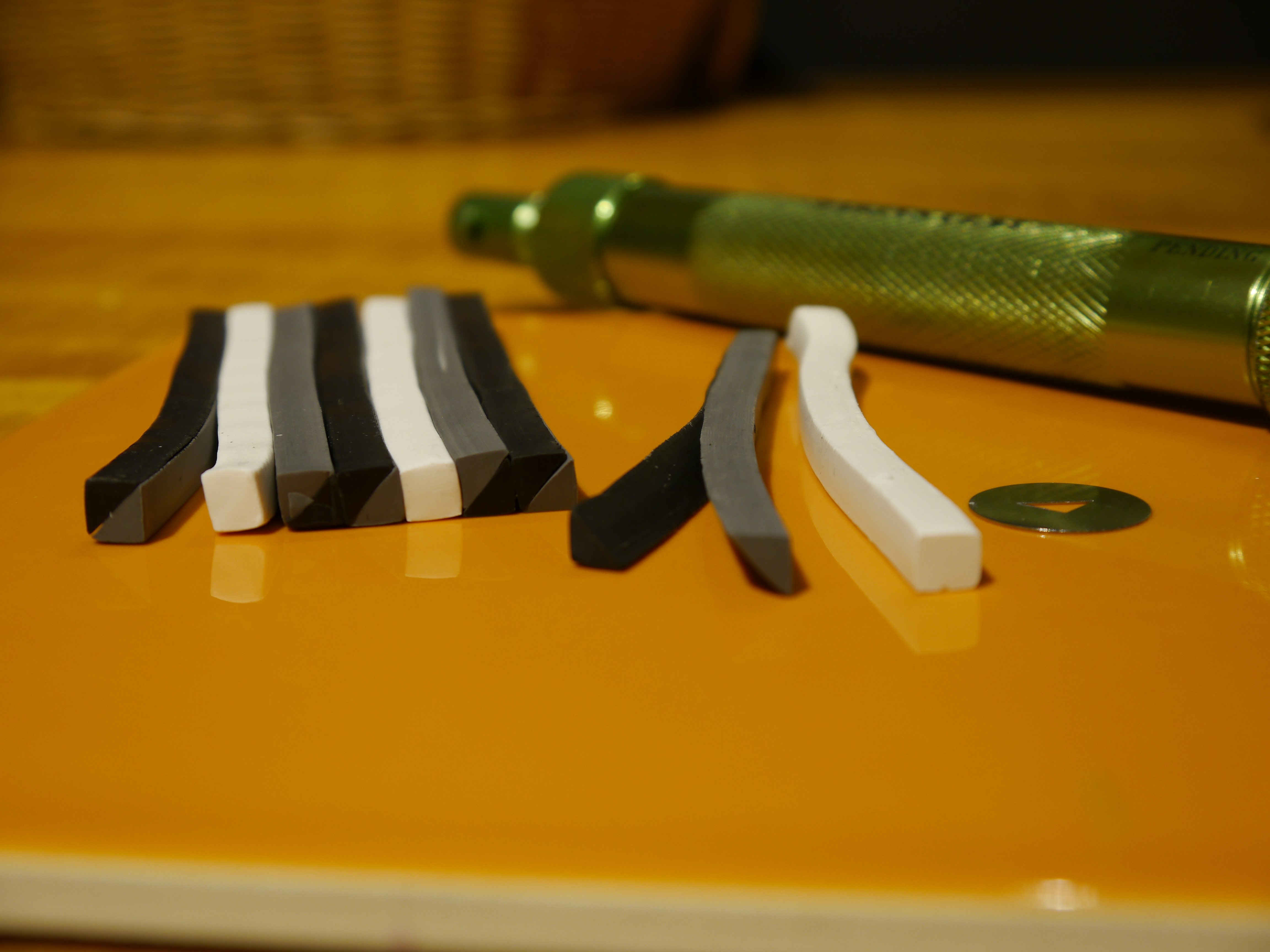Putting the extruded components together Published July 11, 2015 at 4608 × 3456 in Geometric Canes Combining the extruded components – white square, black triange and grey triangle
