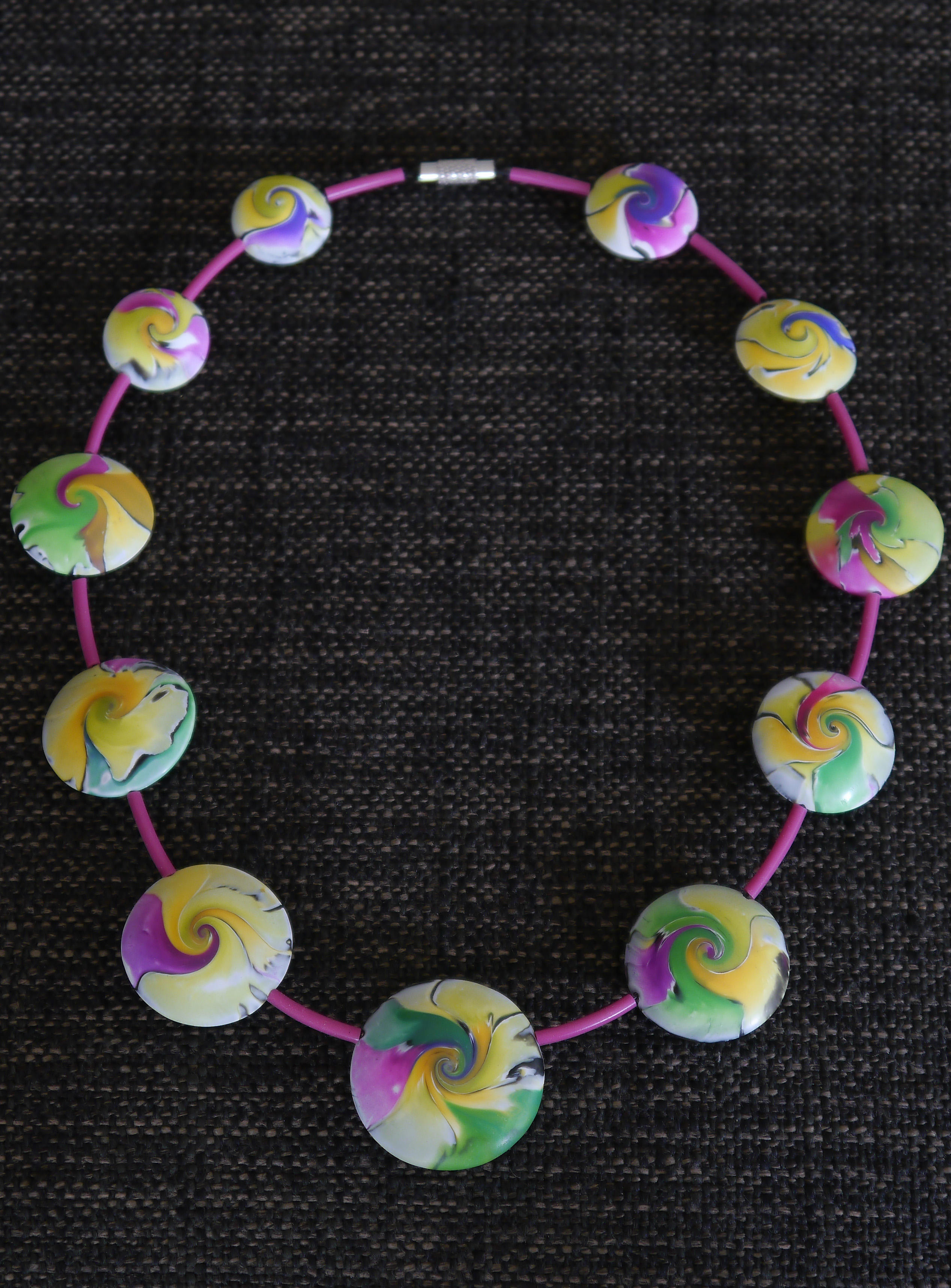 Finally, when your scrap is well past looking good, use it in the middle of your beads to save your good colours. See photo of swirl beads above where I used scrap for the middle of the beads. Similarly, you can use it on the backs of pendants or pins.