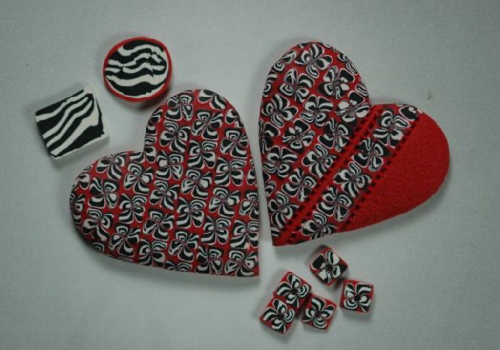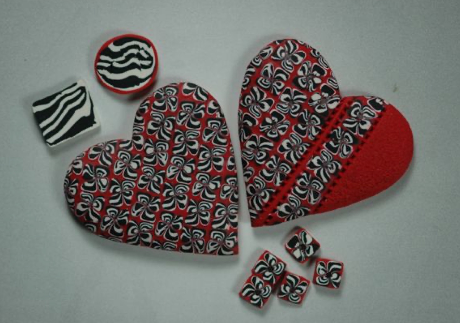 Ron Lehocky has made tens of thousands of polymer clay hearts to raise funds for Kids Centre in Louiseville, which provides health services to children. He relies on people donating polymer clay they don’t want. By using an extruder (sometimes with the core attachment) he makes some ugly canes into works of art.