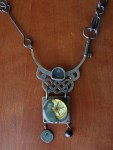 - Vintage camera parts, brass, resin, ‘shrink plastic’, coin, beads, steel wire