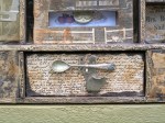- ‘Grandma’s fork shrine’ – art board, paper, teabags, photocopies (of family photos, postcards, notebooks and my grandmother’s recipe book), found objects and my grandmother’s mixing fork.